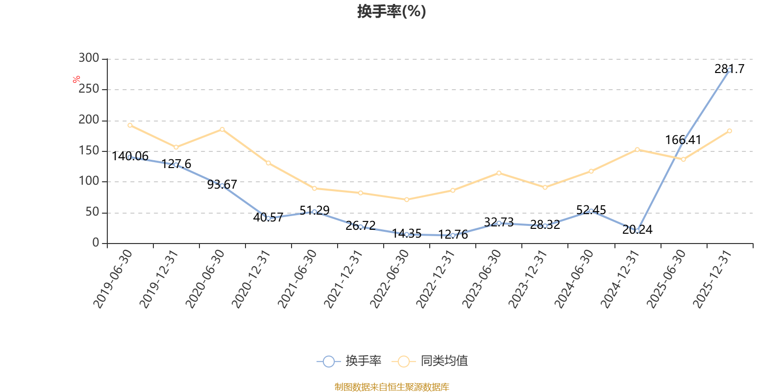 截至2025年12月31日,基金最近一年换手率约455.03%,持续1年高于同类均值。