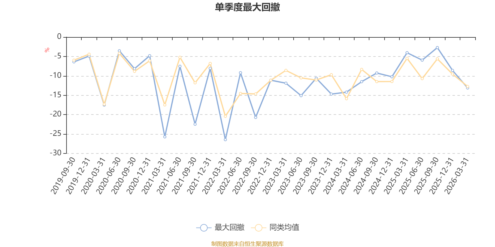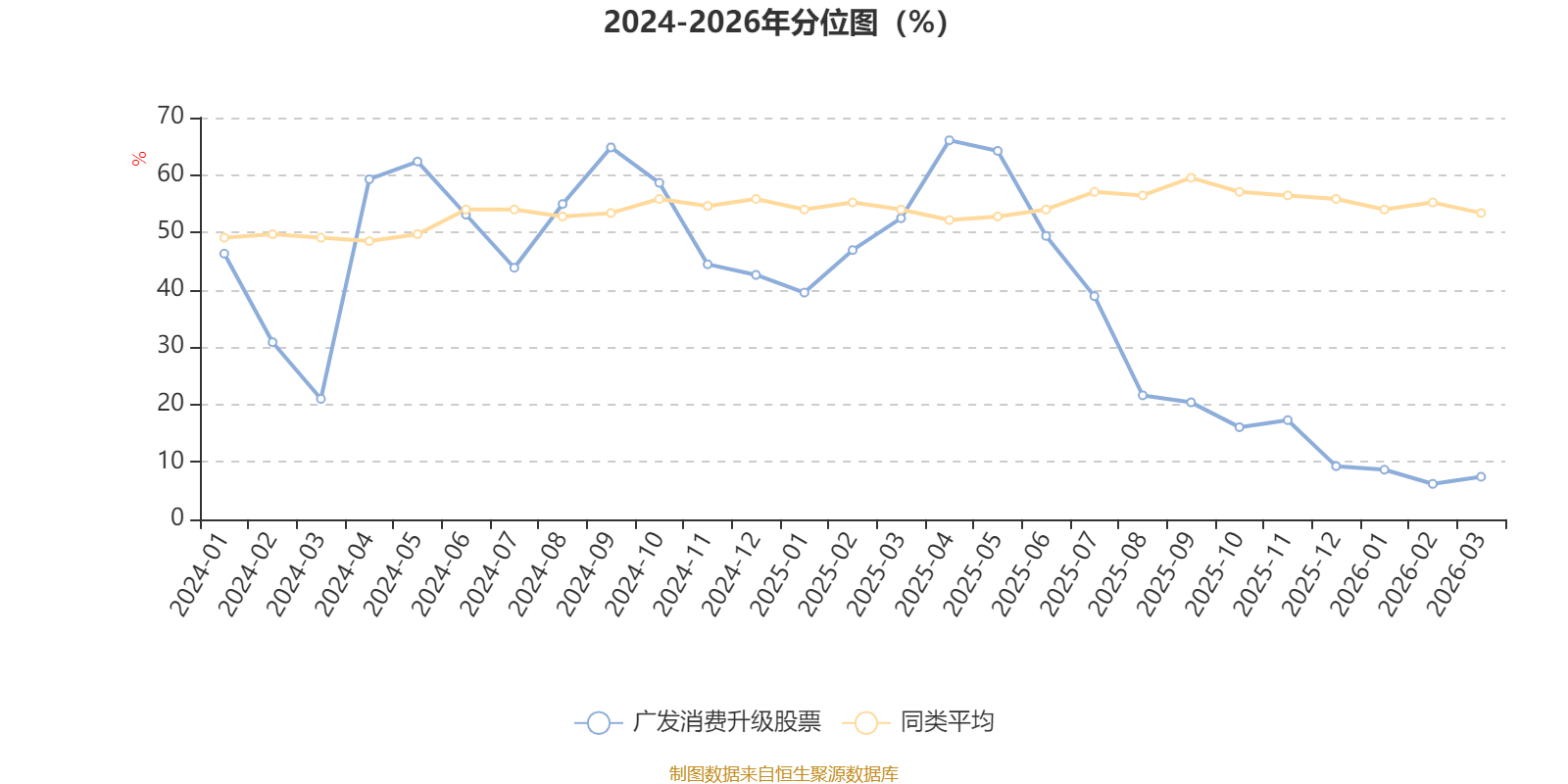 通过所选区间该基金净值增长率分位图,可以观察该基金与同类基金业绩比较情况。图为坐标原点到区间内某时点的净值增长率在同类基金中的分位数。