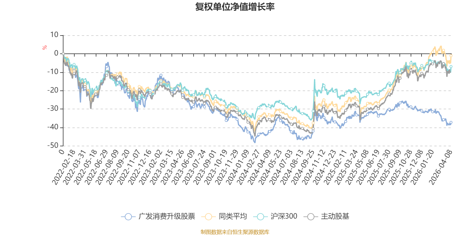 截至4月8日,广发消费升级股票近三个月复权单位净值增长率为-8.80%,位于同类可比基金157/167;近半年复权单位净值增长率为-15.55%,位于同类可比基金164/167;近一年复权单位净值增长率为-1.72%,位于同类可比基金163/165;近三年复权单位净值增长率为-23.09%,位于同类可比基金151/157。