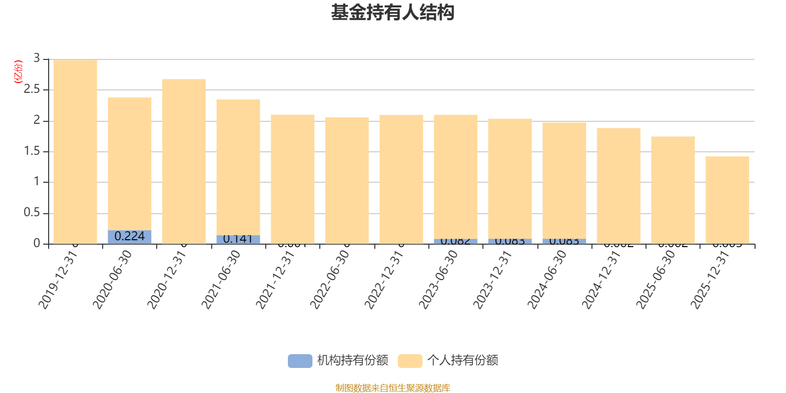 截至2025年12月31日,基金持有人共计1.29万户,合计持有1.42亿份。其中管理人员工持有400.57份,机构持有份额占比0.20%,个人投资者占比99.80%。