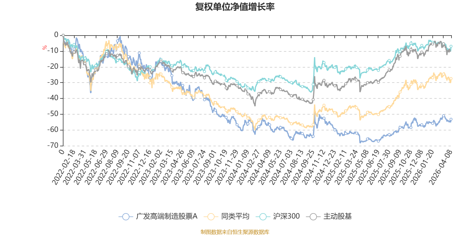 截至4月8日,广发高端制造股票A近三个月复权单位净值增长率为4.90%,位于同类可比基金5/39;近半年复权单位净值增长率为4.90%,位于同类可比基金14/39;近一年复权单位净值增长率为46.62%,位于同类可比基金24/39;近三年复权单位净值增长率为-31.62%,位于同类可比基金33/33。