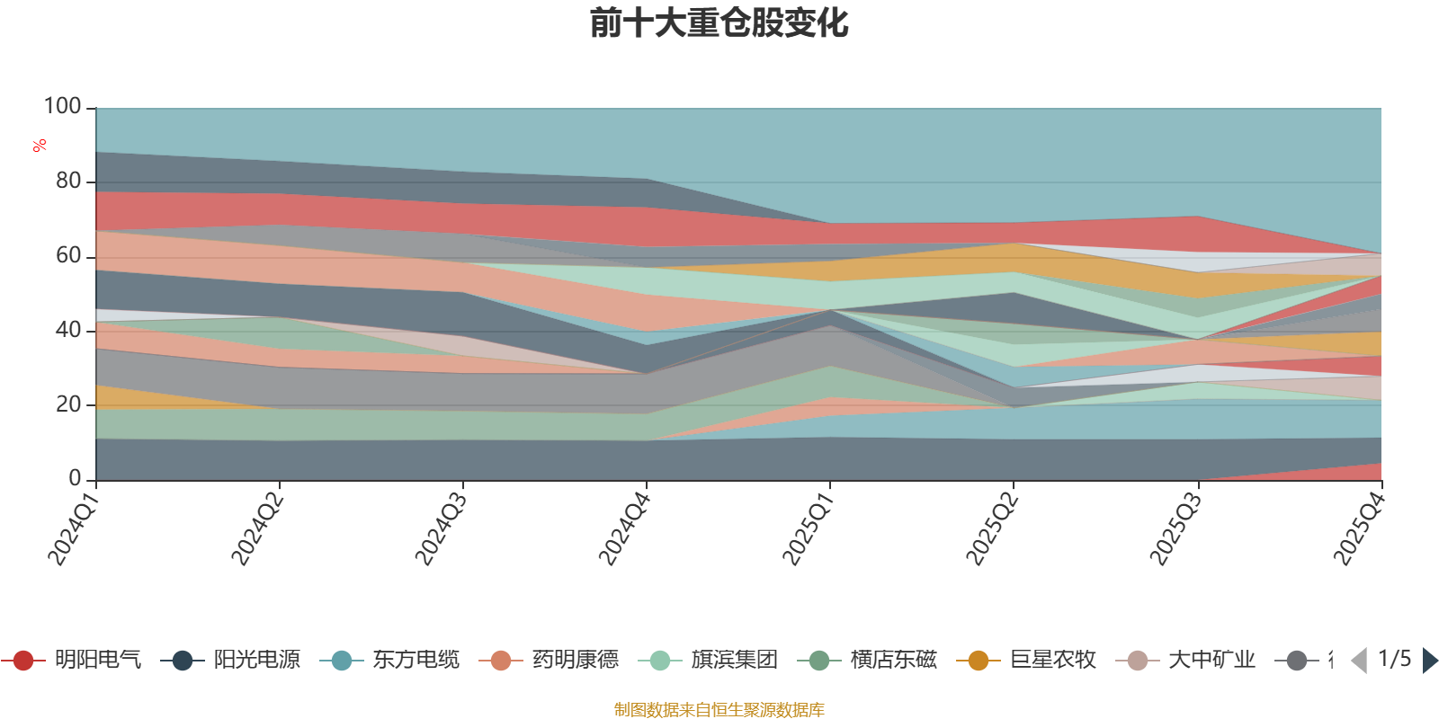 该基金持股集中度较高,近2年前十大重仓股集中度长期超过60%。截至2025年末,基金十大重仓股分别是东方电缆、阳光电源、中矿资源、大中矿业、鹏辉能源、天华新能、盛新锂能、恩捷股份、明阳电气、海力风电。