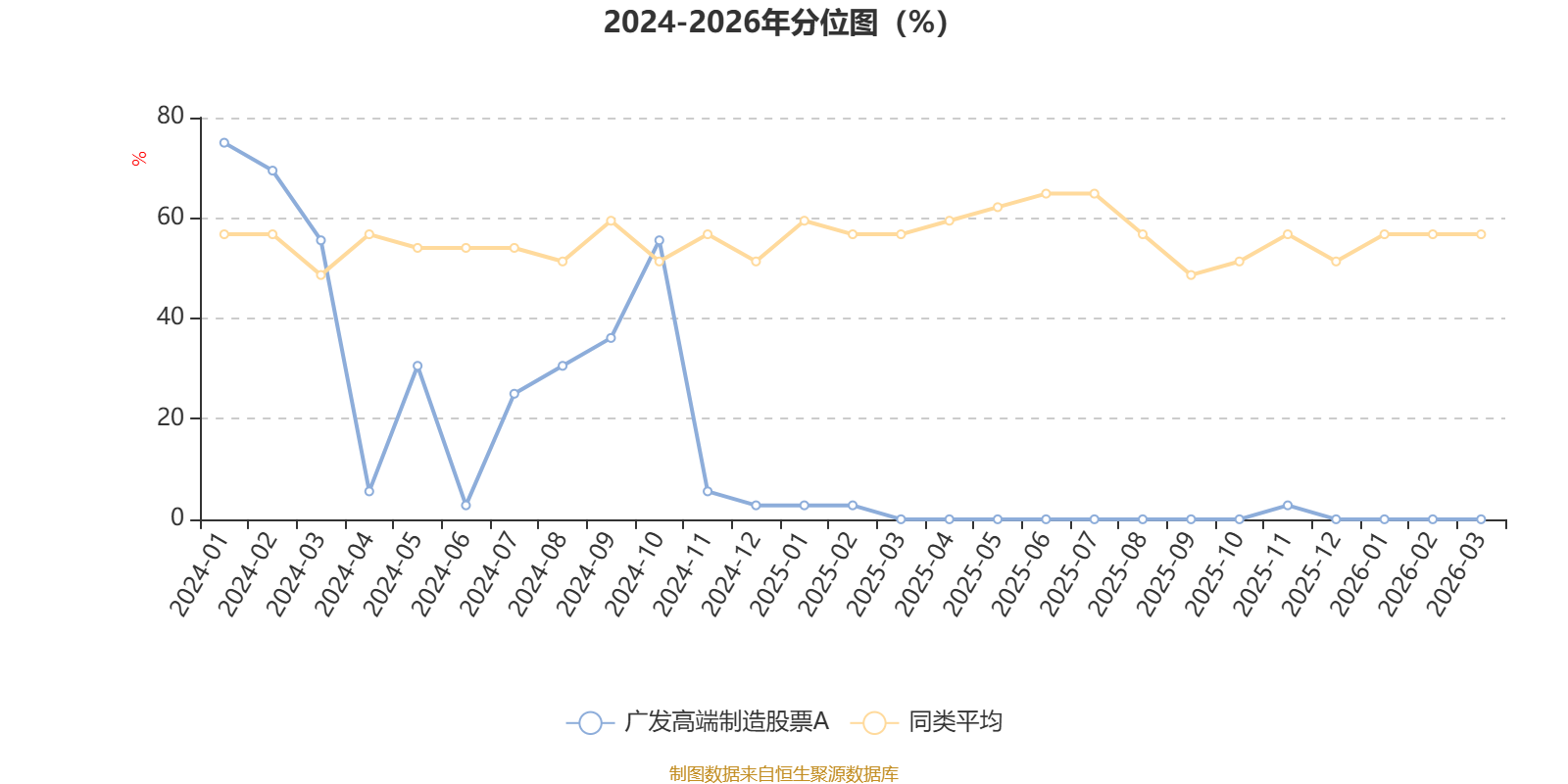通过所选区间该基金净值增长率分位图,可以观察该基金与同类基金业绩比较情况。图为坐标原点到区间内某时点的净值增长率在同类基金中的分位数。