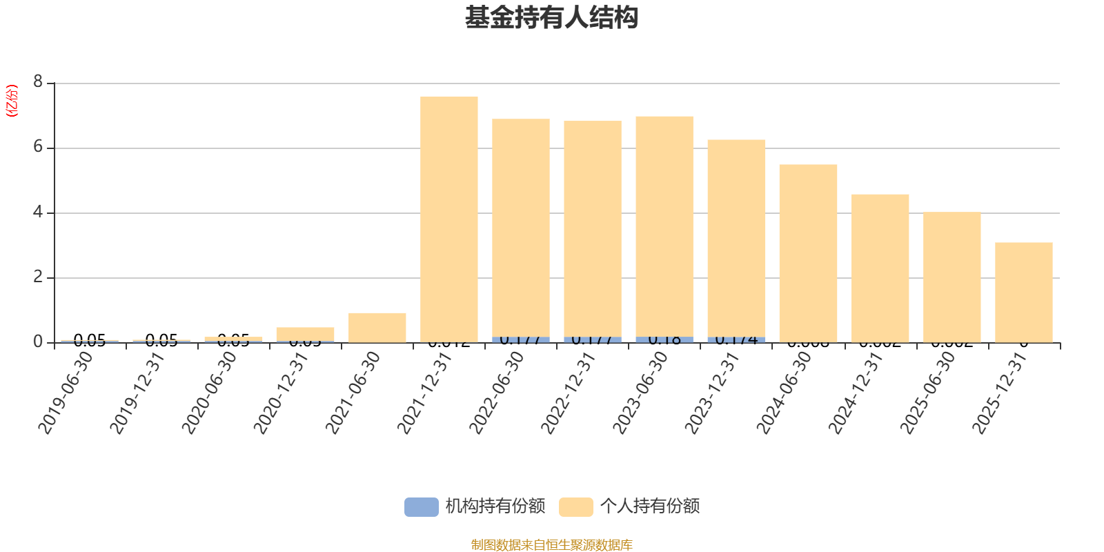 截至2025年12月31日,基金持有人共计6.21万户,合计持有3.08亿份。其中管理人员工持有20.11万份,占比0.07%,机构持有份额占比0.02%,个人投资者占比99.98%。