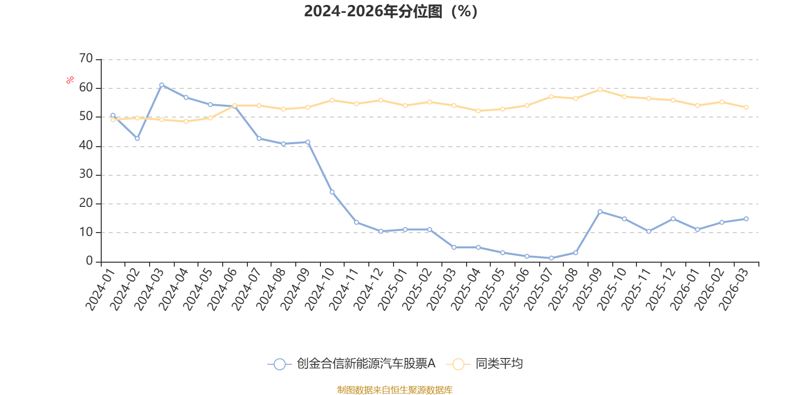 通过所选区间该基金净值增长率分位图,可以观察该基金与同类基金业绩比较情况。图为坐标原点到区间内某时点的净值增长率在同类基金中的分位数。