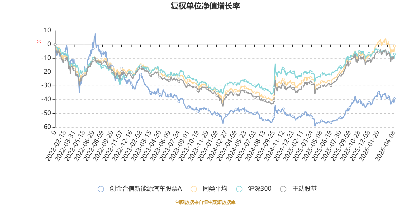 截至4月8日,创金合信新能源汽车股票A近三个月复权单位净值增长率为-1.95%,位于同类可比基金104/167;近半年复权单位净值增长率为-1.51%,位于同类可比基金112/167;近一年复权单位净值增长率为49.36%,位于同类可比基金68/165;近三年复权单位净值增长率为-5.08%,位于同类可比基金135/157。