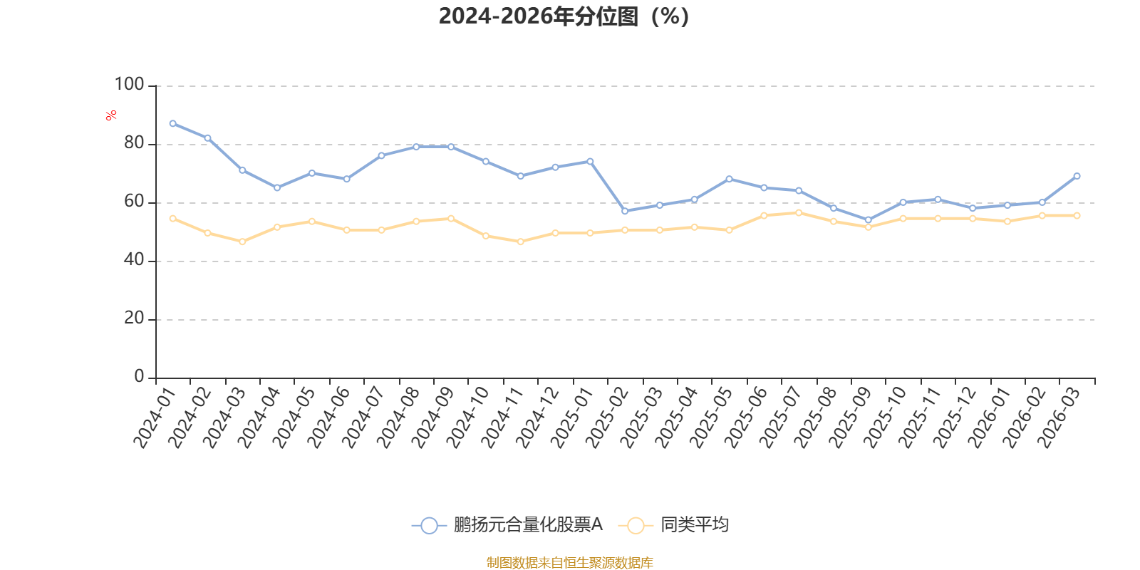 通过所选区间该基金净值增长率分位图,可以观察该基金与同类基金业绩比较情况。图为坐标原点到区间内某时点的净值增长率在同类基金中的分位数。