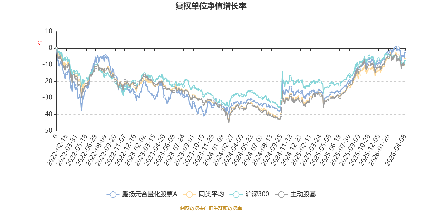 截至4月8日,鹏扬元合量化股票A近三个月复权单位净值增长率为1.85%,位于同类可比基金53/121;近半年复权单位净值增长率为6.57%,位于同类可比基金57/121;近一年复权单位净值增长率为46.04%,位于同类可比基金52/120;近三年复权单位净值增长率为22.35%,位于同类可比基金37/90。