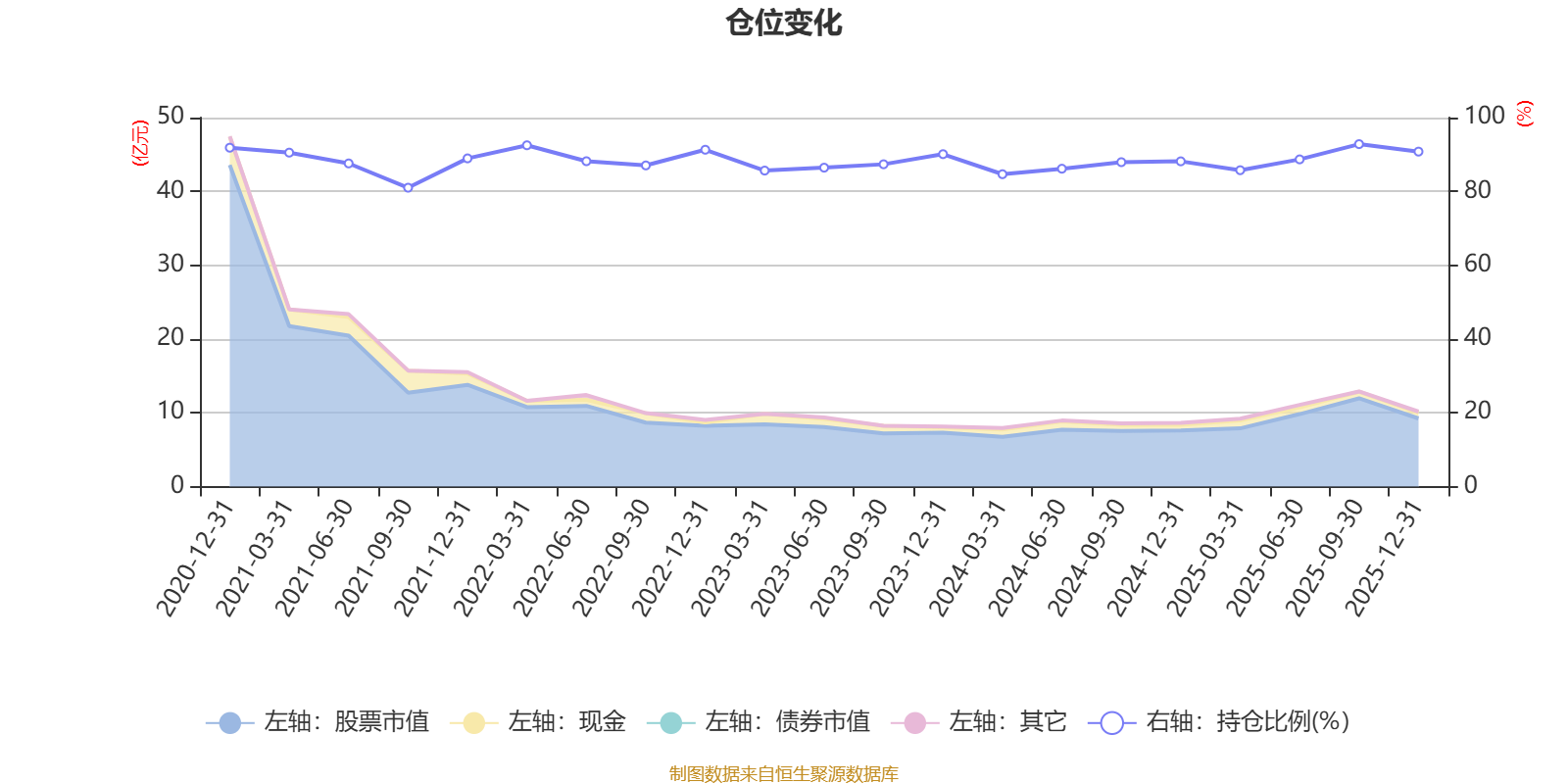 据定期报告数据统计,近三年平均股票仓位为87.87%,同类平均为88.36%。2025年三季度末基金达到92.81%的最高仓位,2021年三季度末最低,为81%。
