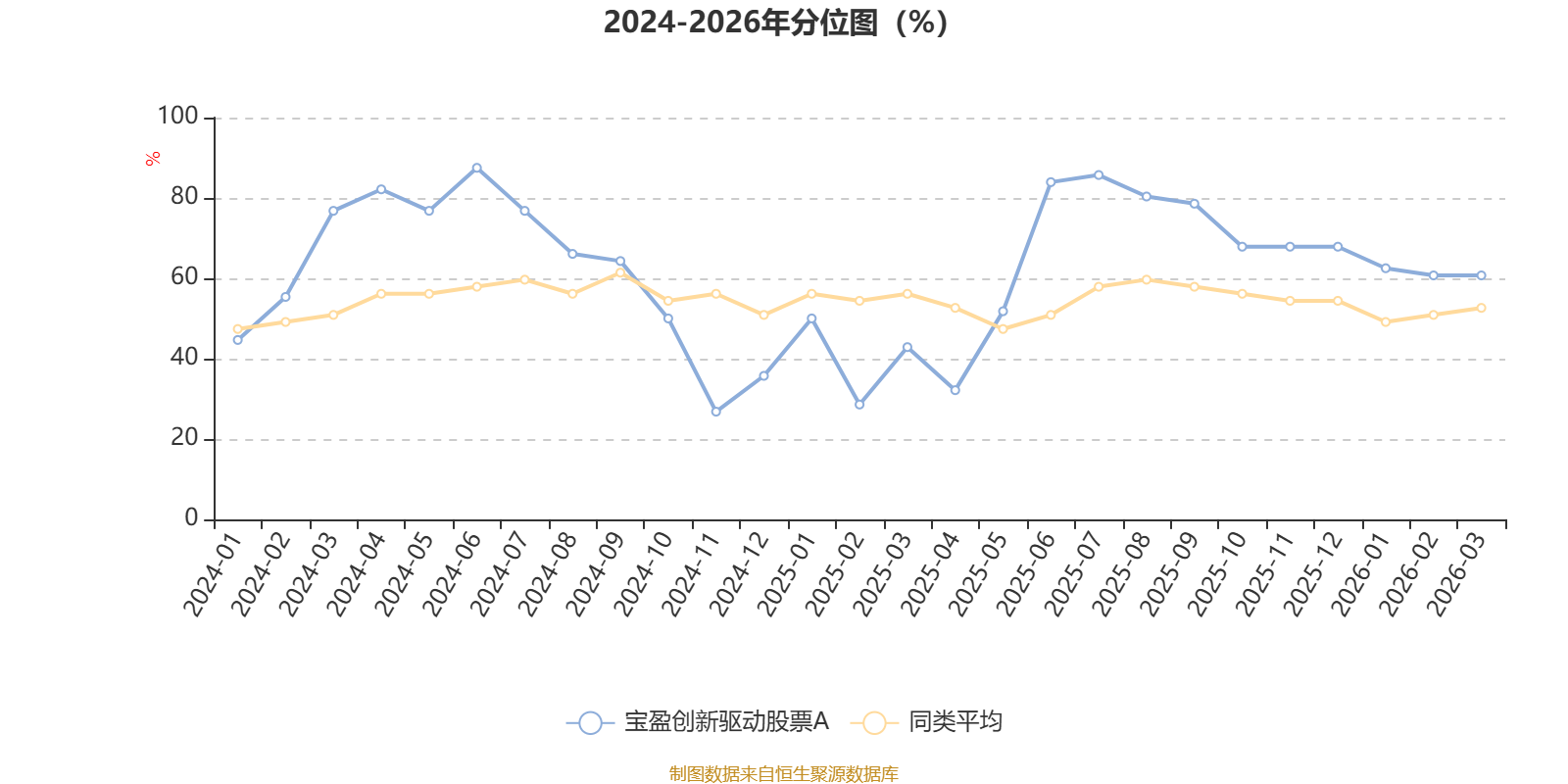 通过所选区间该基金净值增长率分位图,可以观察该基金与同类基金业绩比较情况。图为坐标原点到区间内某时点的净值增长率在同类基金中的分位数。