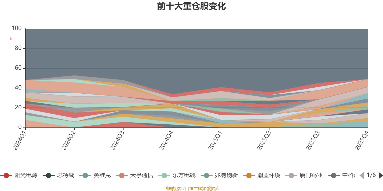 截至2025年末,基金十大重仓股分别是中际旭创、新易盛、英维克、中矿资源、厦门钨业、云铝股份、菲利华、源杰科技、宁德时代、瀚蓝环境。