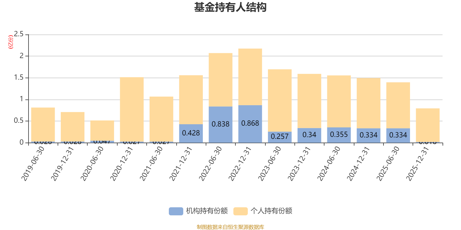 截至2025年12月31日,基金持有人共计9.15万户,合计持有7941.81万份。其中管理人员工持有43.46万份,占比0.55%,机构持有份额占比2.25%,个人投资者占比97.75%。