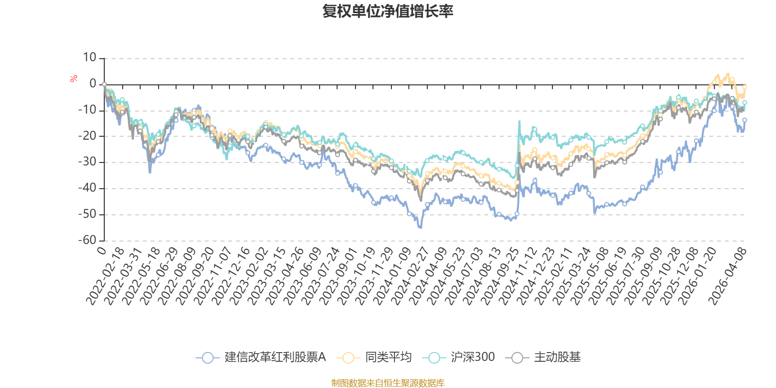 截至4月8日,建信改革红利股票A近三个月复权单位净值增长率为-0.76%,位于同类可比基金86/167;近半年复权单位净值增长率为19.40%,位于同类可比基金10/167;近一年复权单位净值增长率为70.62%,位于同类可比基金24/165;近三年复权单位净值增长率为16.97%,位于同类可比基金95/157。