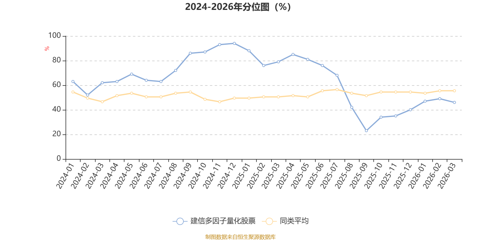 通过所选区间该基金净值增长率分位图,可以观察该基金与同类基金业绩比较情况。图为坐标原点到区间内某时点的净值增长率在同类基金中的分位数。