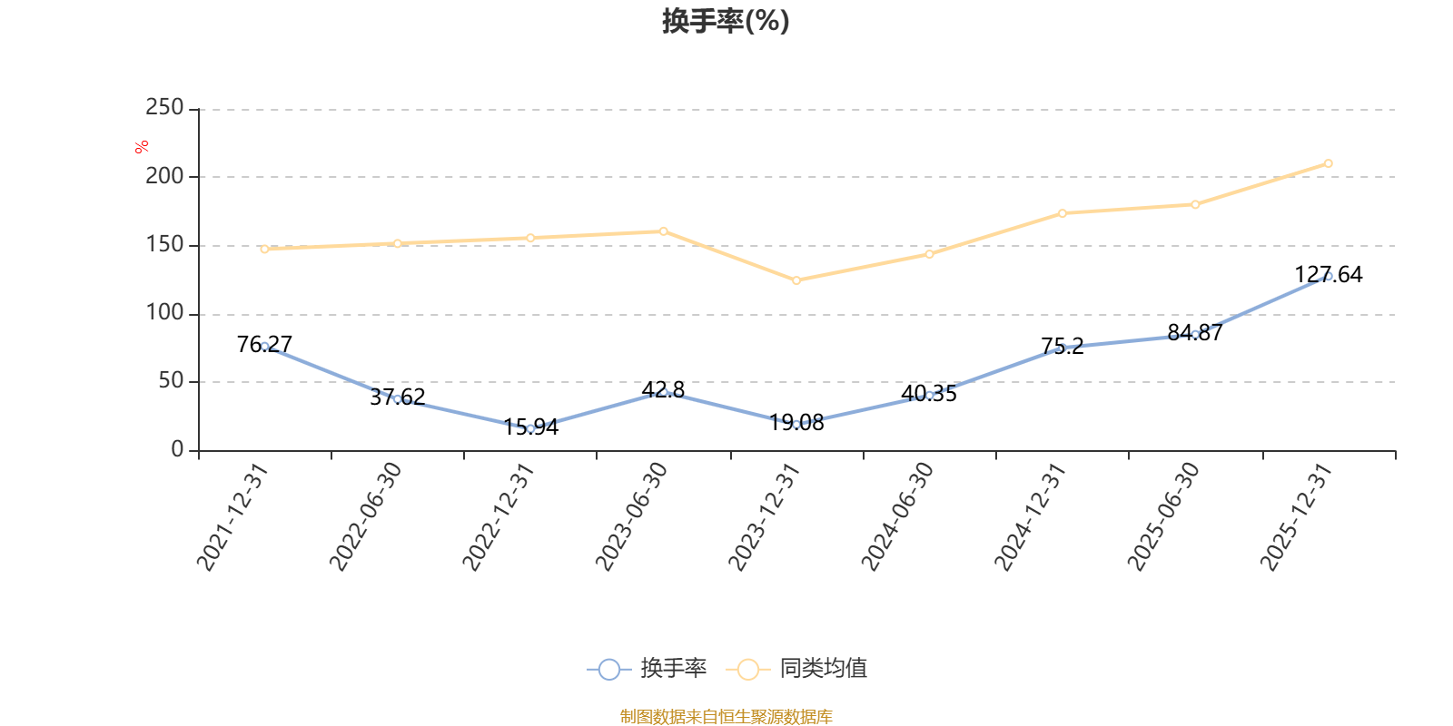 截至2025年12月31日,基金最近一年换手率约212.46%,持续低于同类均值。