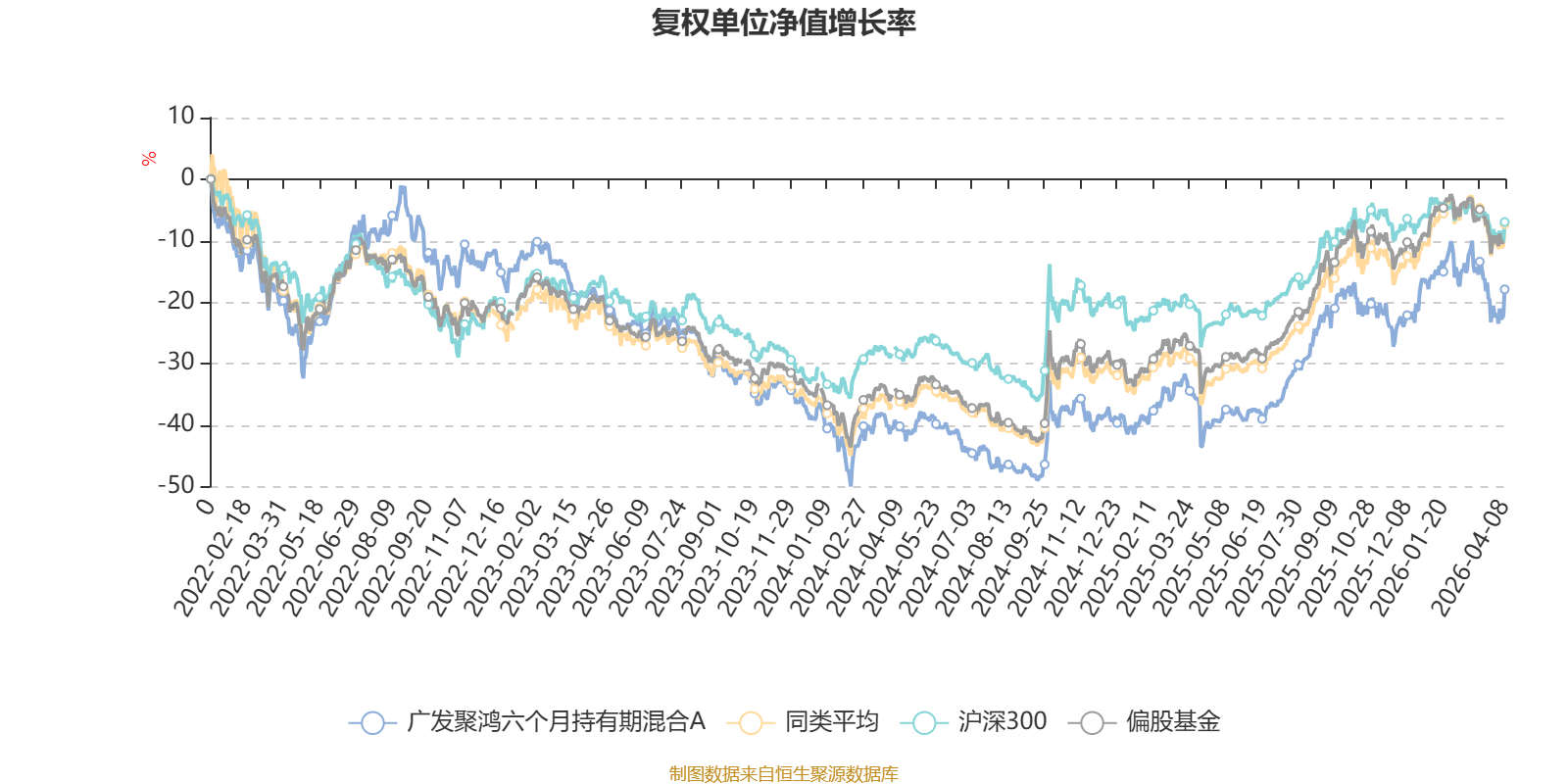 截至4月8日,广发聚鸿六个月持有期混合A近三个月复权单位净值增长率为-1.97%,位于同类可比基金181/265;近半年复权单位净值增长率为-0.97%,位于同类可比基金172/265;近一年复权单位净值增长率为44.96%,位于同类可比基金113/265;近三年复权单位净值增长率为-0.41%,位于同类可比基金208/261。