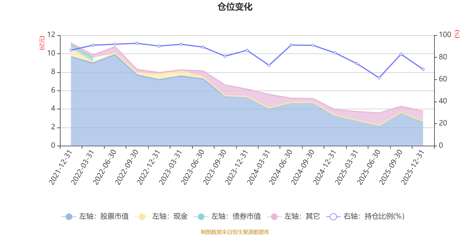 据定期报告数据统计,近三年平均股票仓位为81.29%,同类平均为85.83%。2022年三季度末基金达到92.72%的最高仓位,2025年上半年末最低,为61.5%。
