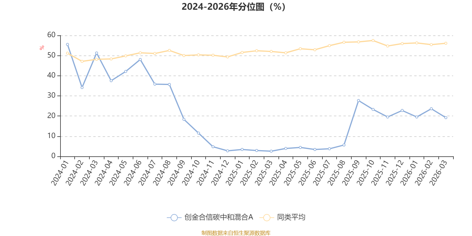 通过所选区间该基金净值增长率分位图,可以观察该基金与同类基金业绩比较情况。图为坐标原点到区间内某时点的净值增长率在同类基金中的分位数。