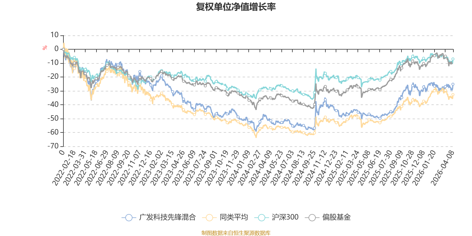 截至4月8日,广发科技先锋混合近三个月复权单位净值增长率为-0.94%,位于同类可比基金49/100;近半年复权单位净值增长率为0.89%,位于同类可比基金47/100;近一年复权单位净值增长率为48.90%,位于同类可比基金45/99;近三年复权单位净值增长率为8.13%,位于同类可比基金50/76。