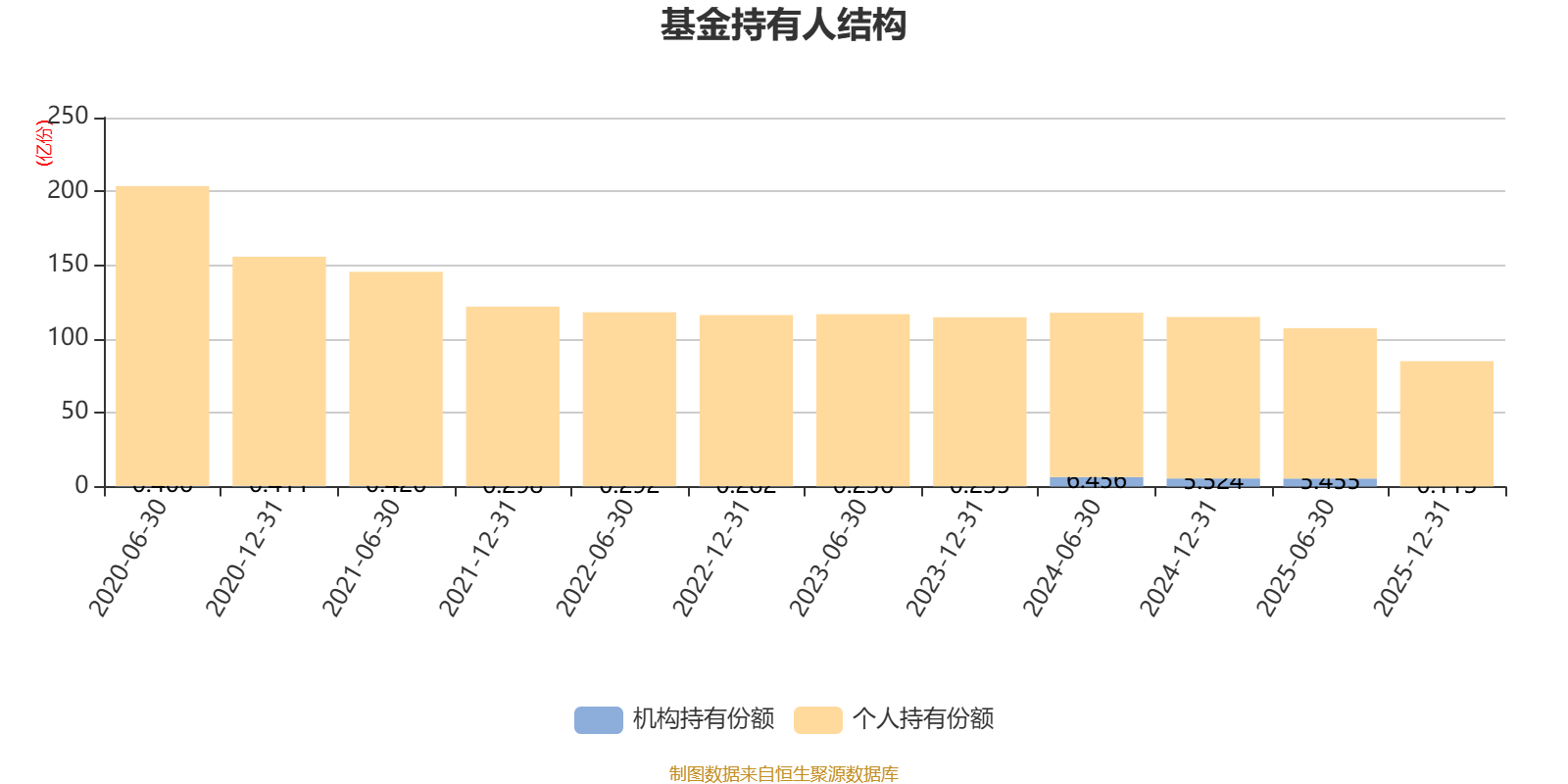 截至2025年12月31日,基金持有人共计47.51万户,合计持有84.94亿份。其中管理人员工持有48.78万份,占比0.01%,机构持有份额占比0.13%,个人投资者占比99.87%。