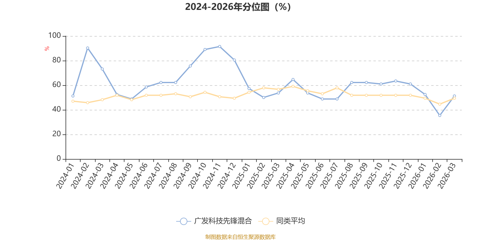 通过所选区间该基金净值增长率分位图,可以观察该基金与同类基金业绩比较情况。图为坐标原点到区间内某时点的净值增长率在同类基金中的分位数。