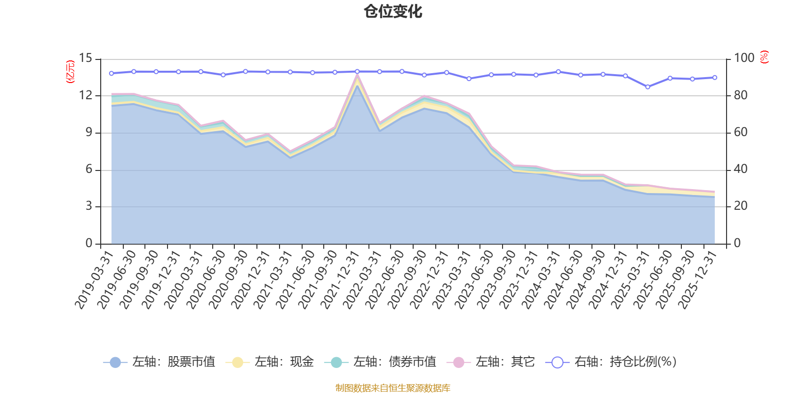 据定期报告数据统计,近三年平均股票仓位为90.36%,同类平均为88.27%。2020年三季度末基金达到93.25%的最高仓位,2025年一季度末最低,为84.9%。