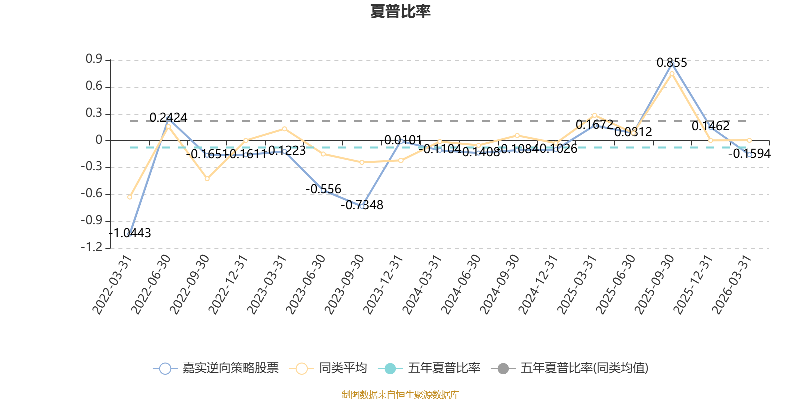 截至3月31日,基金近三年夏普比率为-0.1605,位于同类可比基金155/157。