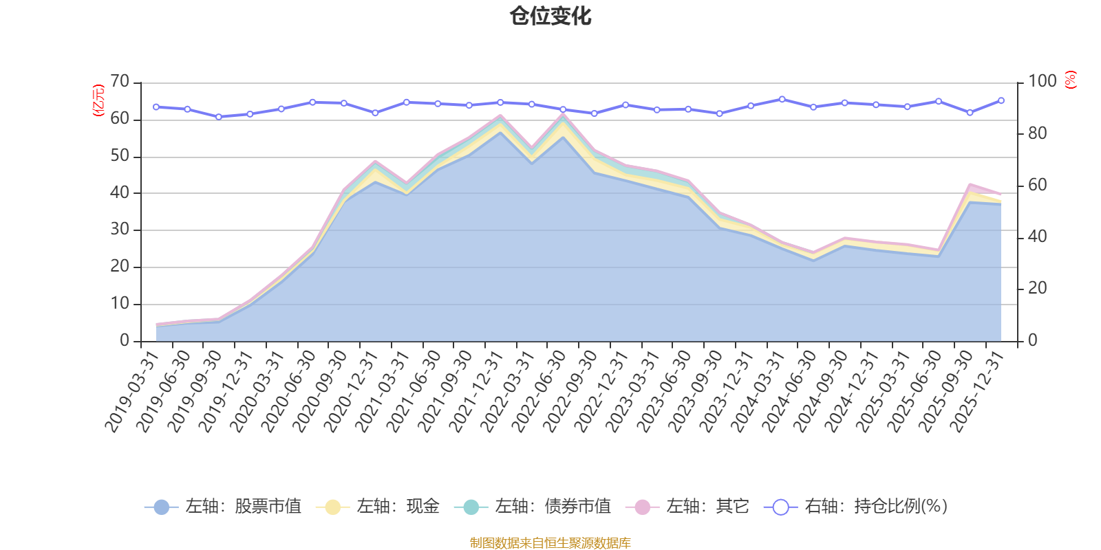 据定期报告数据统计,近三年平均股票仓位为90.89%,同类平均为87.73%。2024年一季度末基金达到93.54%的最高仓位,2019年三季度末最低,为86.7%。