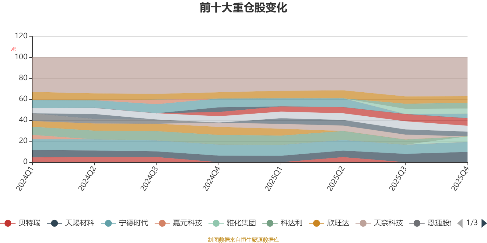 该基金持股集中度较高,近2年前十大重仓股集中度长期超过60%。截至2025年末,基金十大重仓股分别是天赐材料、宁德时代、湖南裕能、璞泰来、亿纬锂能、华友钴业、雅化集团、中矿资源、豪威集团、新宙邦。