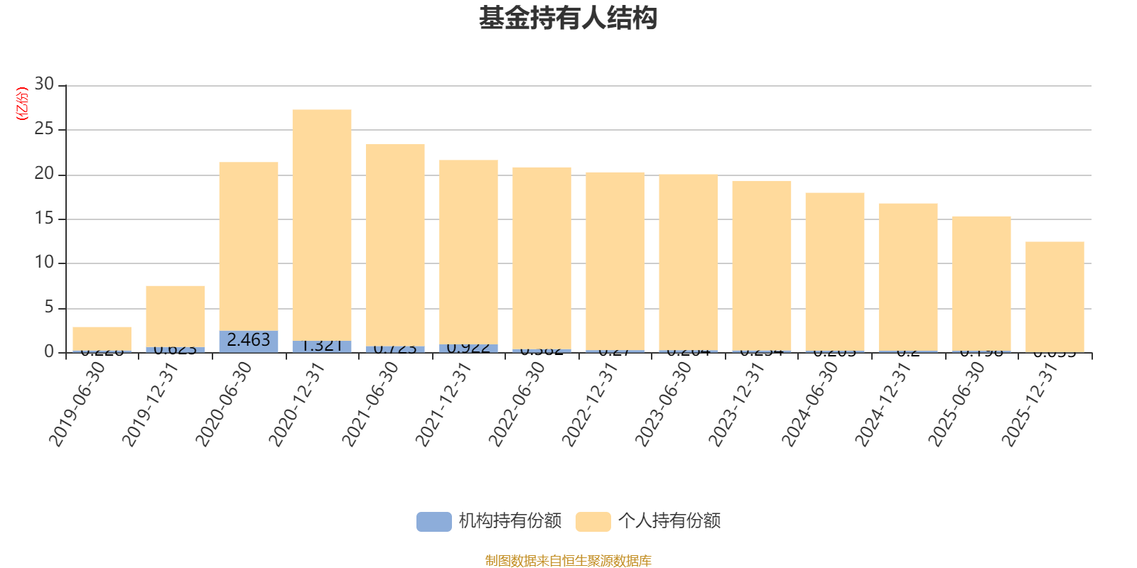 截至2025年12月31日,基金持有人共计32.96万户,合计持有12.43亿份。其中管理人员工持有59.04万份,占比0.05%,机构持有份额占比0.27%,个人投资者占比99.73%。
