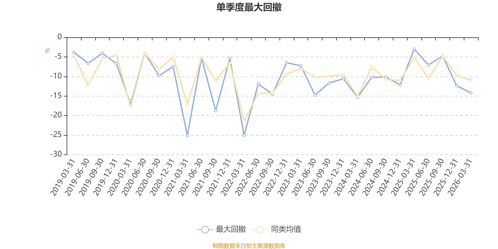 截至4月8日,基金近三年最大回撤为41.44%,同类可比基金排名53/57。单季度最大回撤出现在2021年一季度,为25.14%。