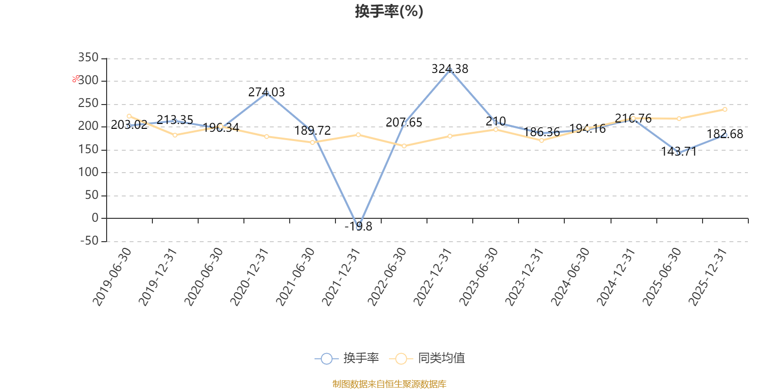 截至2025年12月31日,基金最近一年换手率约303.89%,持续2年低于同类均值。