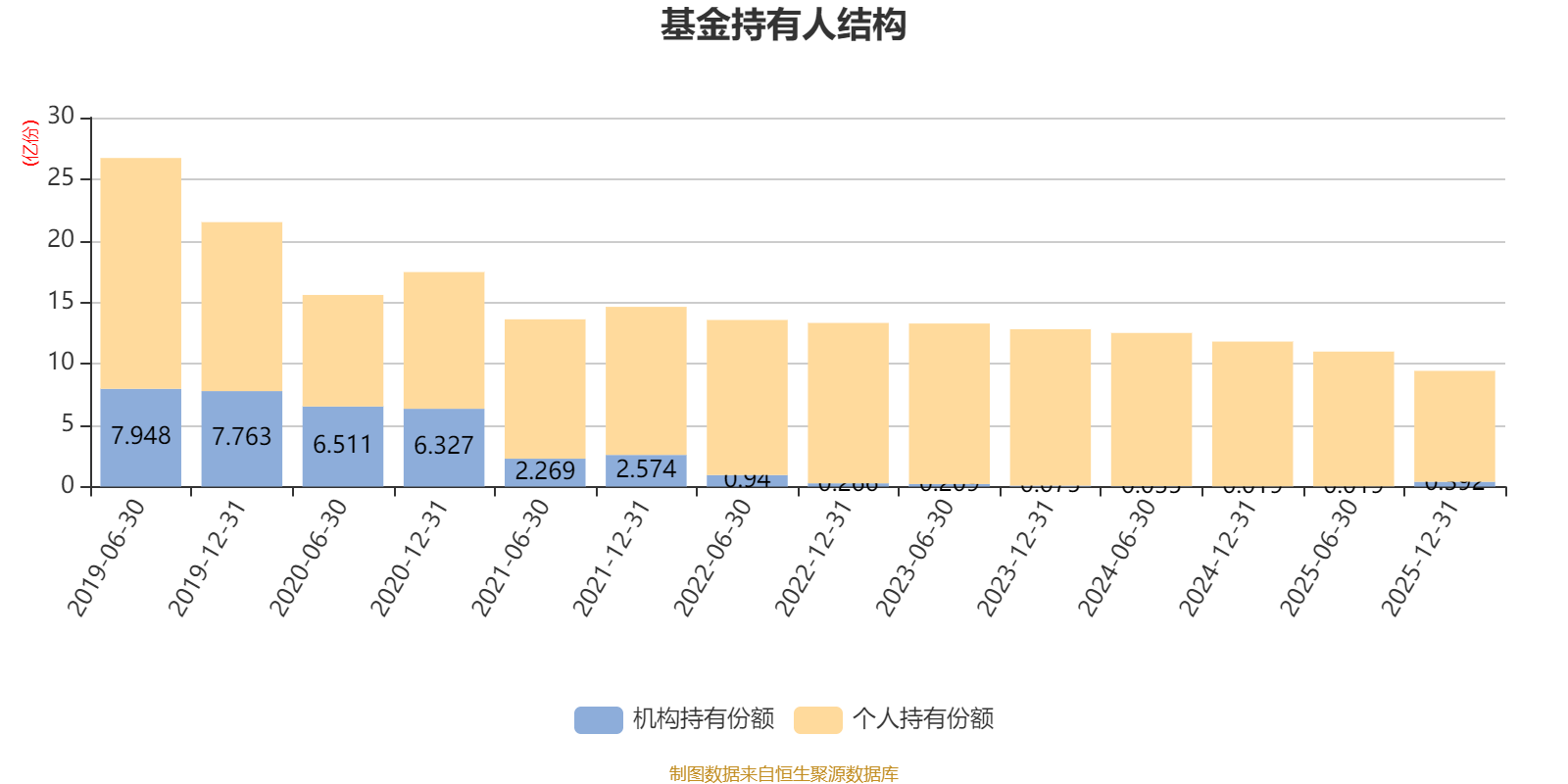 截至2025年12月31日,基金持有人共计21.77万户,合计持有9.41亿份。其中管理人员工持有126.28万份,占比0.13%,机构持有份额占比4.16%,个人投资者占比95.84%。