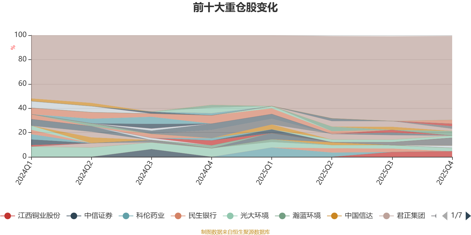 截至2025年末,基金十大重仓股分别是中国平安、江西铜业股份、中国太平、兴业银行、光大环境、焦点科技、中国人寿、中集集团、金风科技、南京高科。
