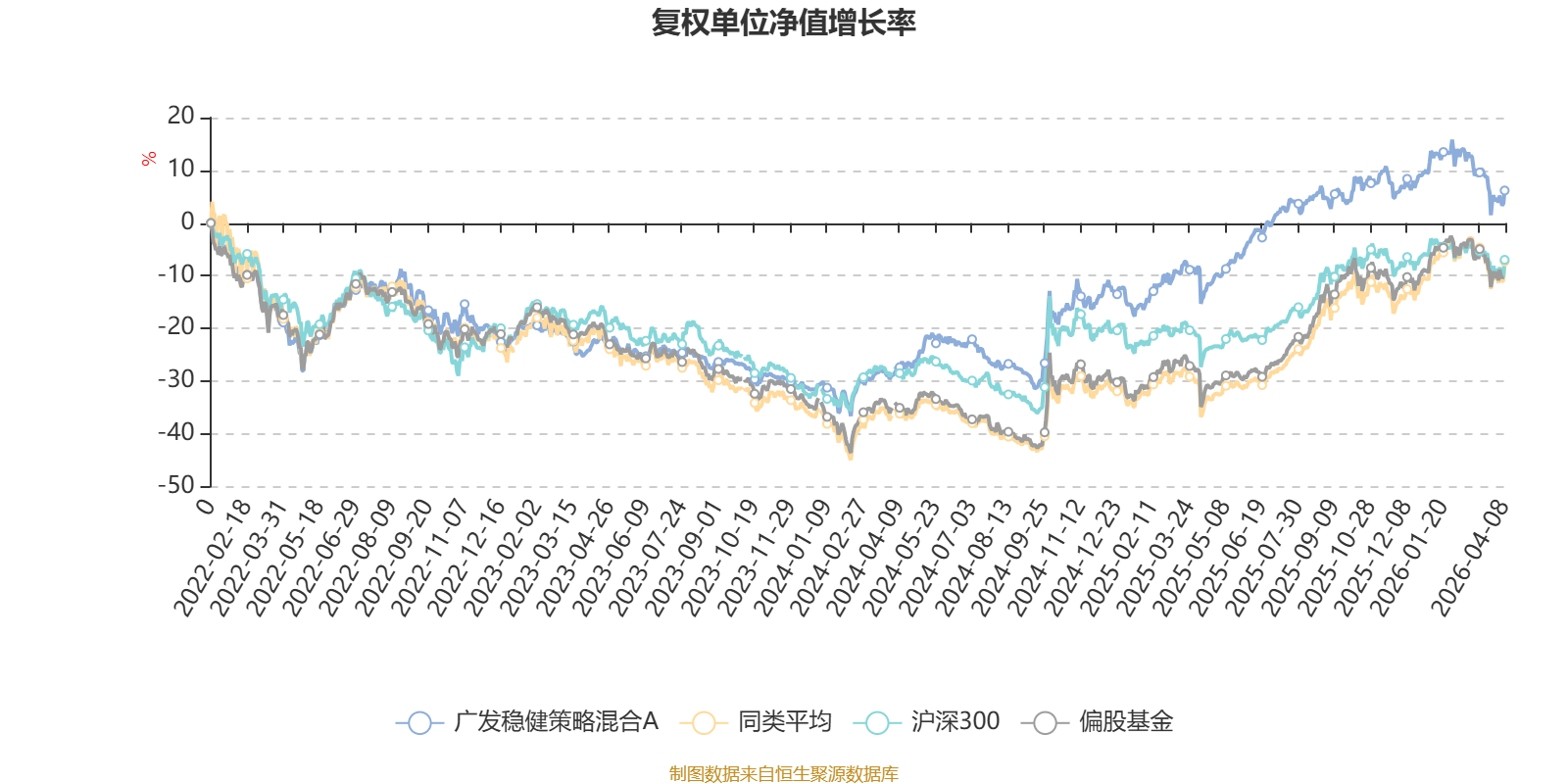 截至4月8日,广发稳健策略混合A近三个月复权单位净值增长率为-5.50%,位于同类可比基金231/265;近半年复权单位净值增长率为-0.11%,位于同类可比基金158/265;近一年复权单位净值增长率为24.04%,位于同类可比基金213/265;近三年复权单位净值增长率为36.56%,位于同类可比基金58/261。