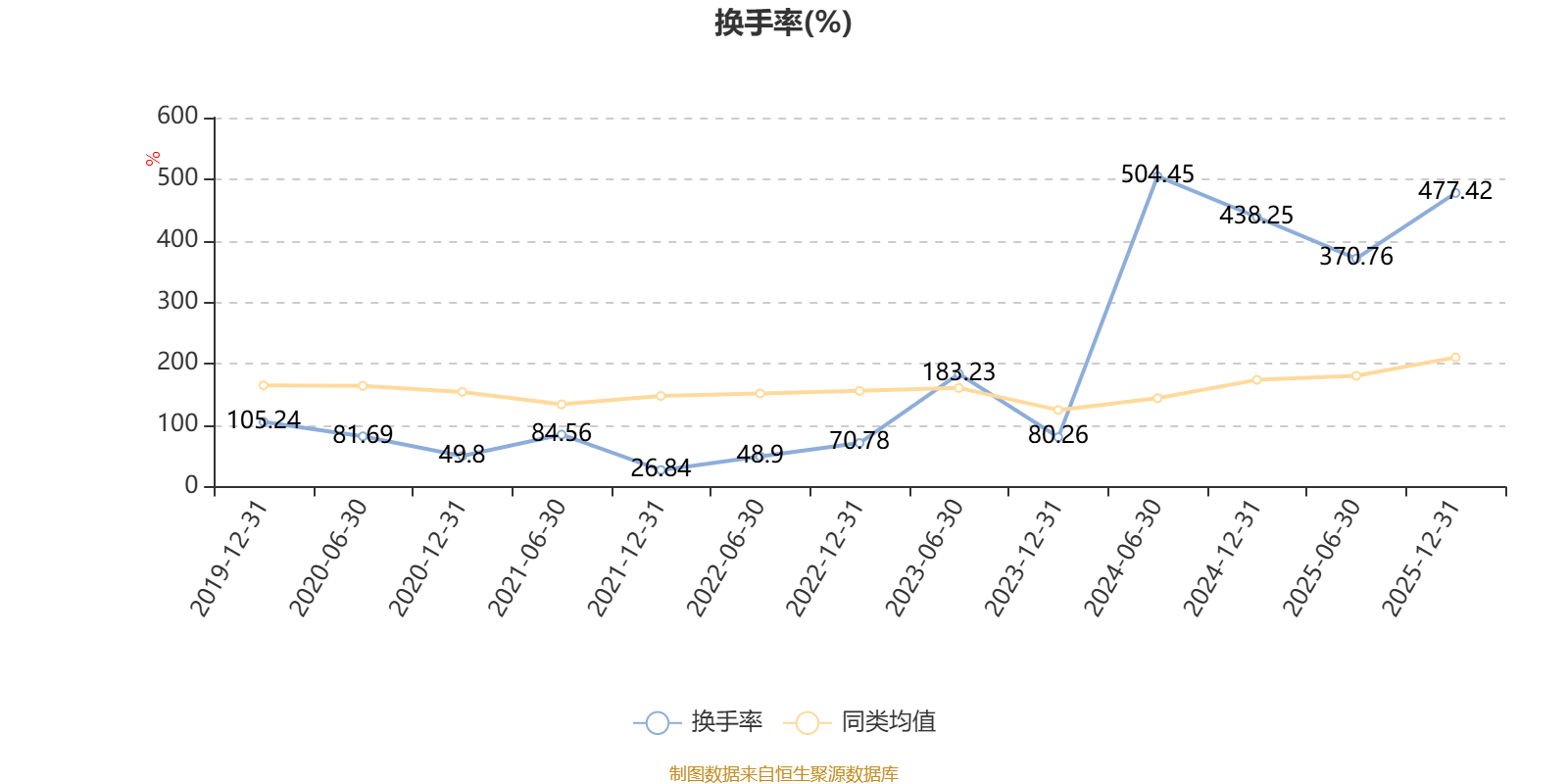 截至2025年12月31日,基金最近一年换手率约897.22%,持续2年高于同类均值。