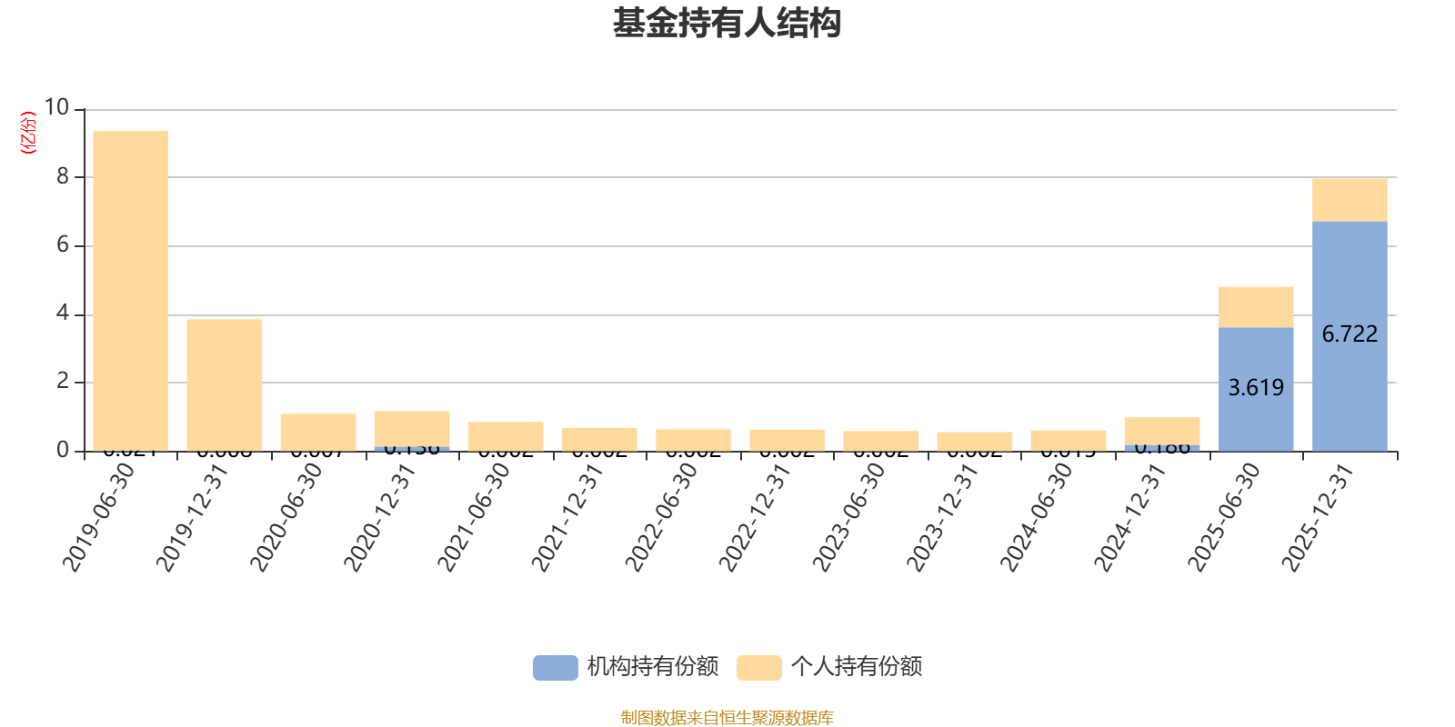 截至2025年12月31日,基金持有人共计2.13万户,合计持有7.97亿份。其中管理人员工持有221.96万份,占比0.28%,机构持有份额占比84.39%,个人投资者占比15.61%。