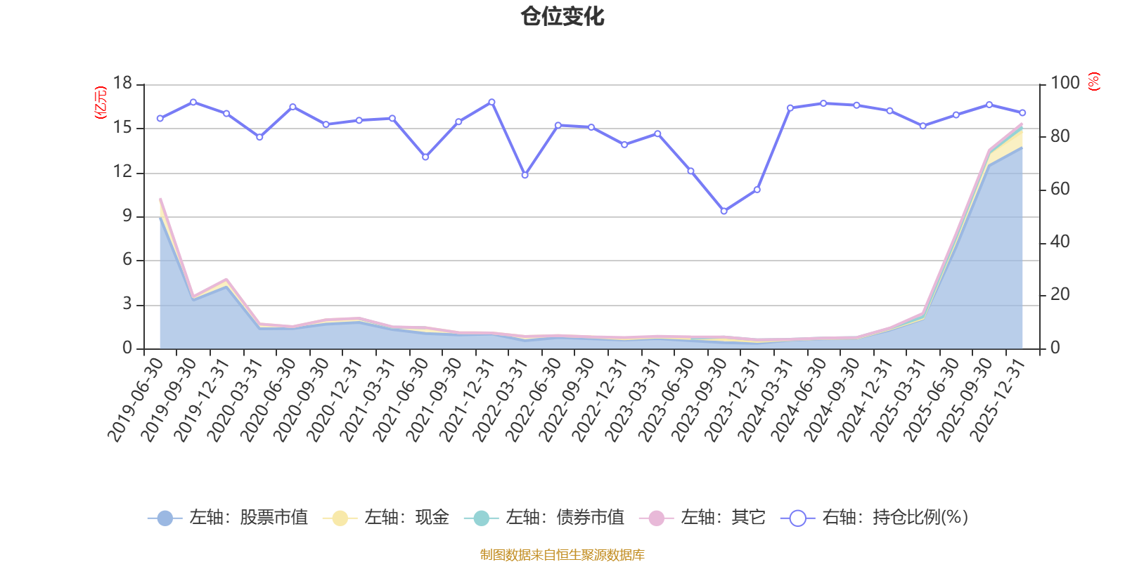 据定期报告数据统计,近三年平均股票仓位为81.75%,同类平均为86.12%。2021年末基金达到93.3%的最高仓位,2023年三季度末最低,为52.06%。