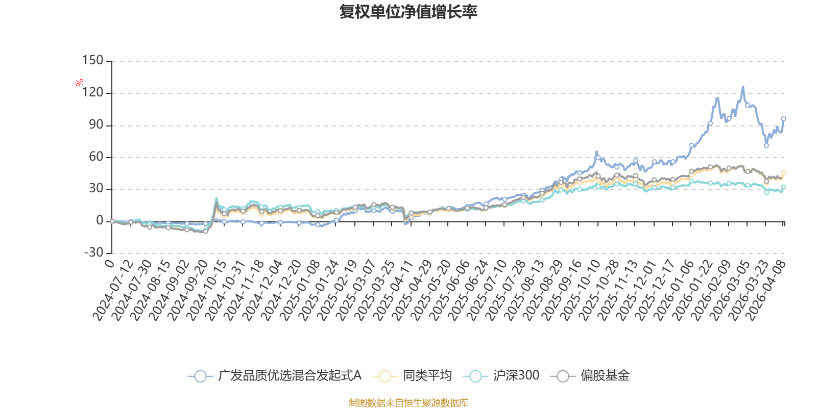 截至4月8日,广发品质优选混合发起式A近三个月复权单位净值增长率为15.74%,位于同类可比基金24/689;近半年复权单位净值增长率为25.49%,位于同类可比基金41/689;近一年复权单位净值增长率为100.53%,位于同类可比基金41/685。