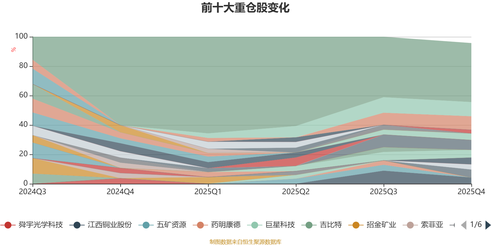 截至2025年末,基金十大重仓股分别是中国黄金国际、紫金矿业、中金黄金、洛阳钼业、招金黄金、华新建材、万国黄金集团、江西铜业股份、云铝股份、赤峰黄金。