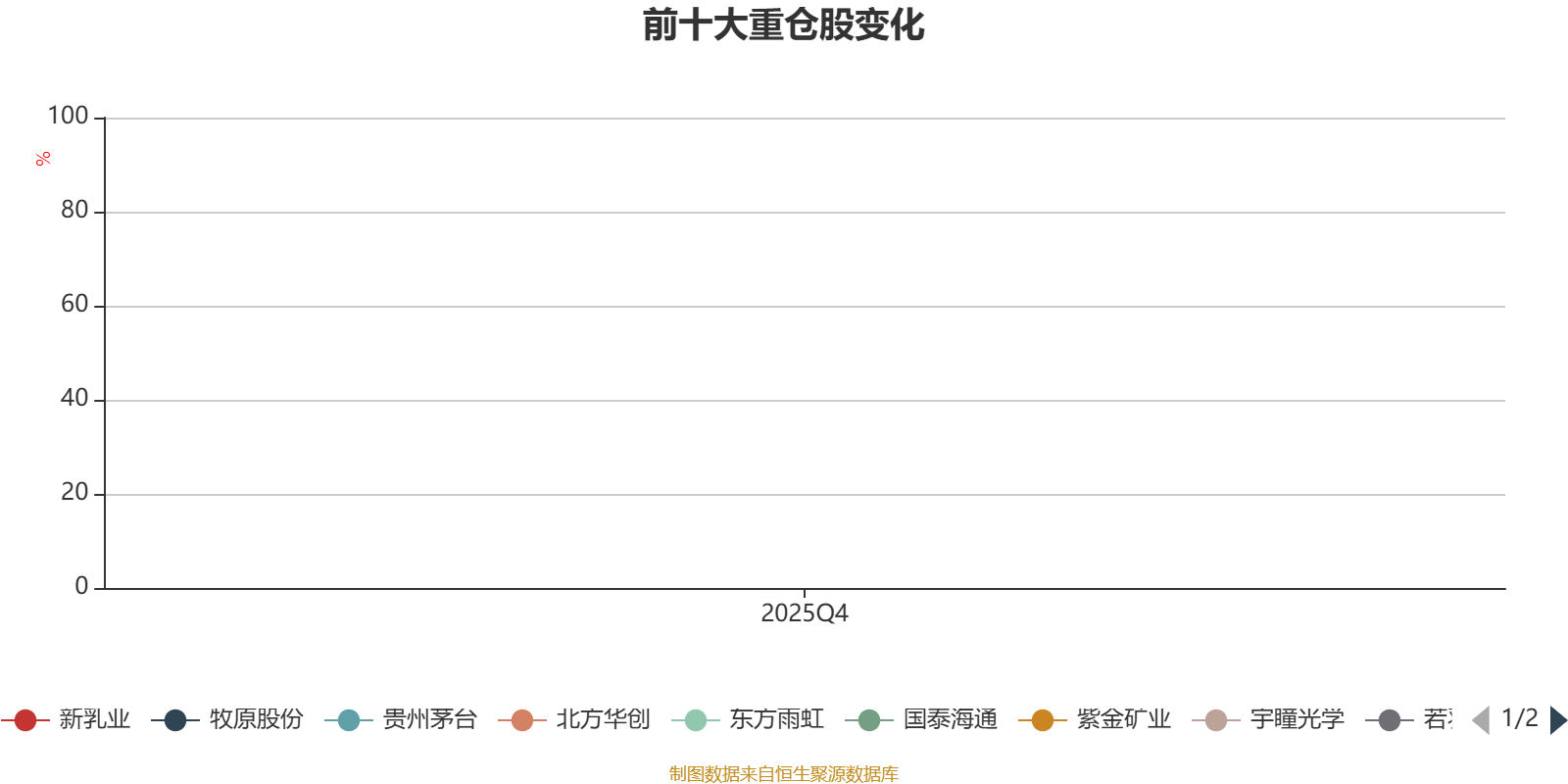 该基金持股集中度较高。截至2025年末,基金十大重仓股分别是牧原股份、贵州茅台、新乳业、北方华创、紫金矿业、宇瞳光学、东方雨虹、国泰海通、若羽臣、复旦微电。