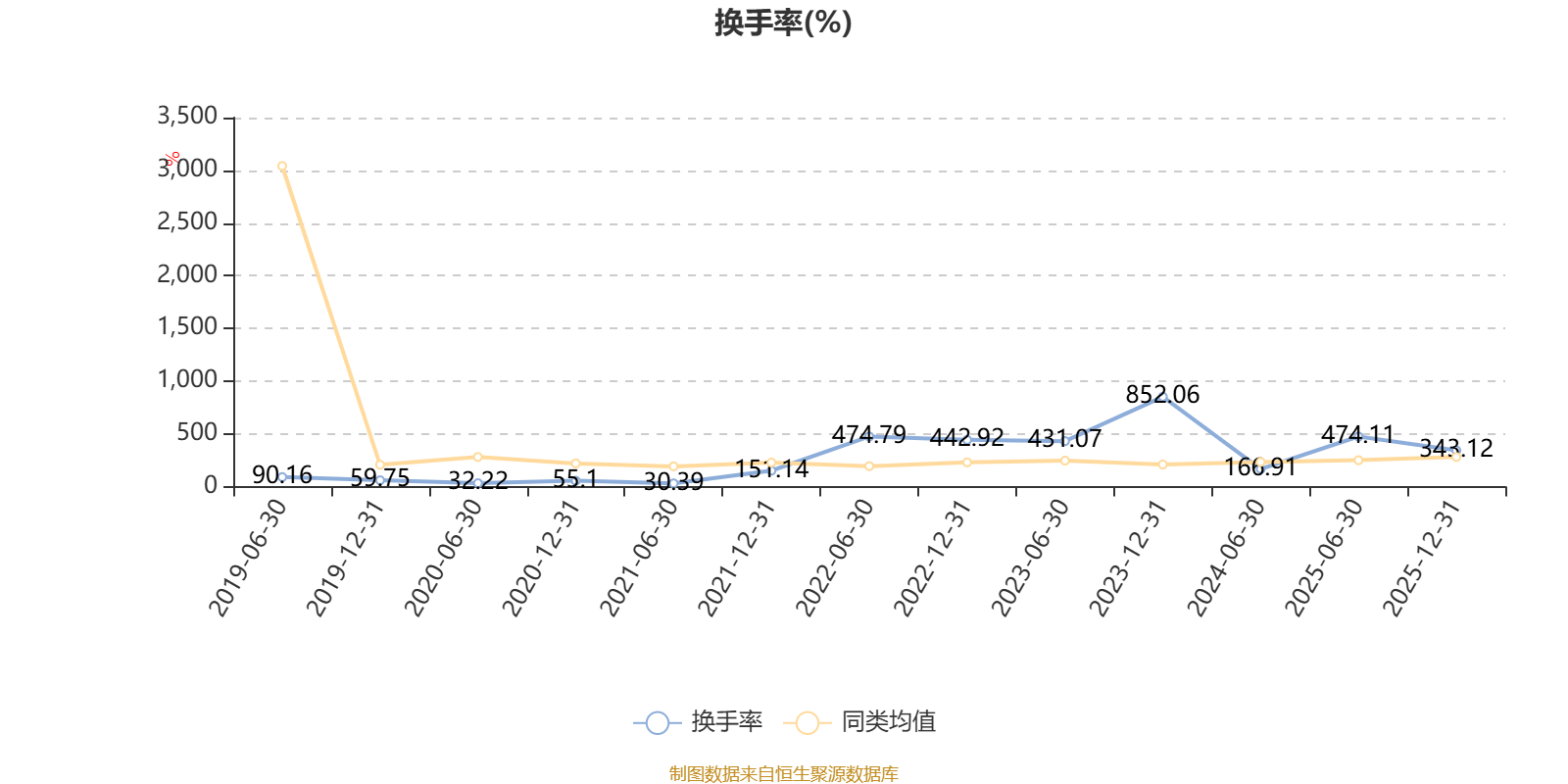 截至2025年12月31日,基金最近一年换手率约996.21%,持续1年高于同类均值。