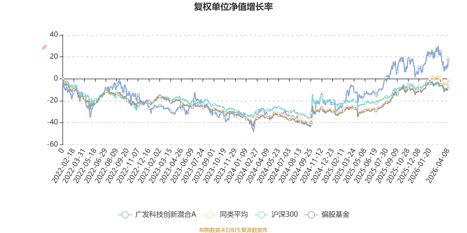 截至4月8日,广发科技创新混合A近三个月复权单位净值增长率为-2.37%,位于同类可比基金85/130;近半年复权单位净值增长率为-1.66%,位于同类可比基金81/130;近一年复权单位净值增长率为50.80%,位于同类可比基金45/130;近三年复权单位净值增长率为61.67%,位于同类可比基金8/126。