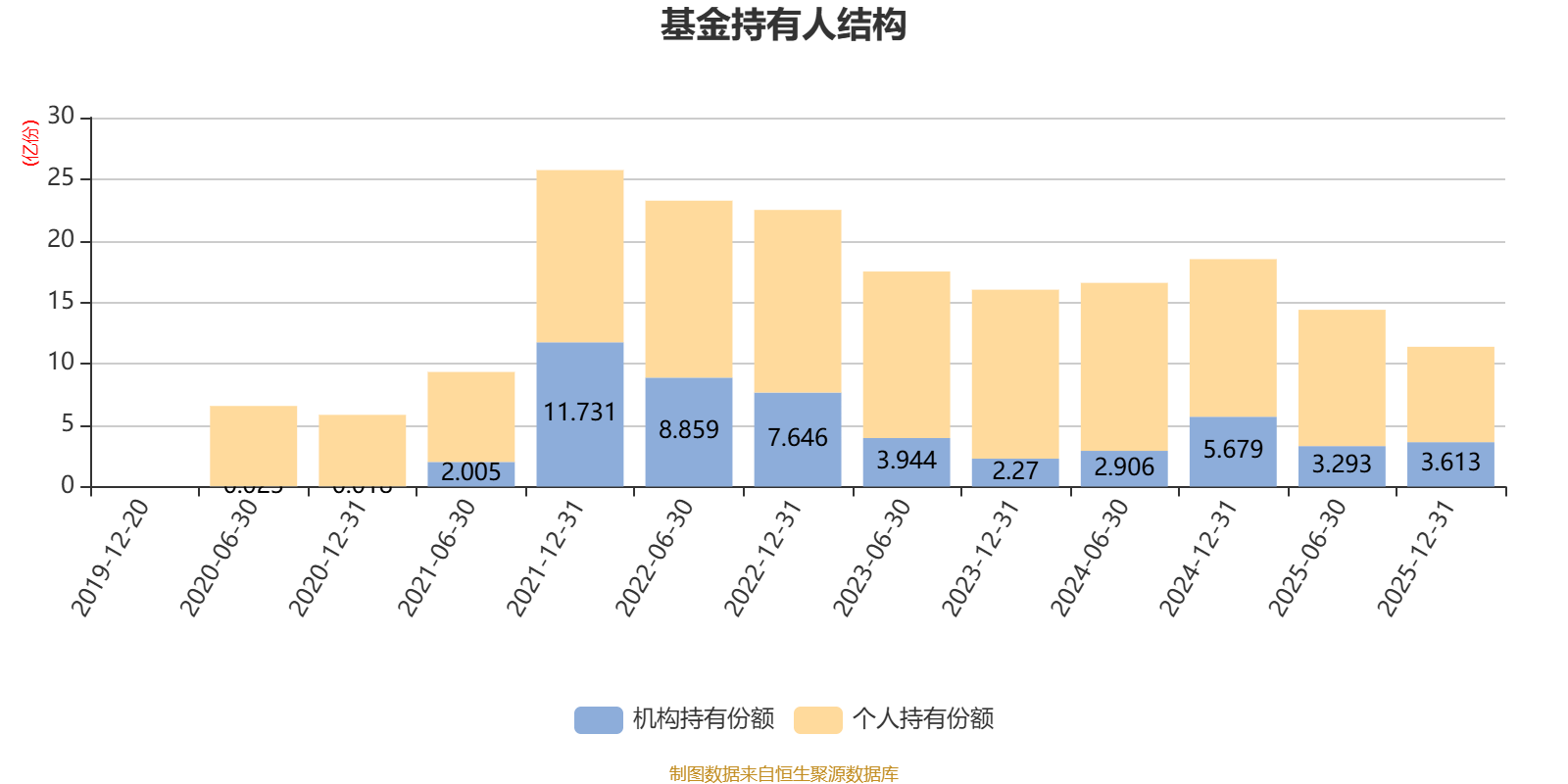 截至2025年12月31日,基金持有人共计8.2万户,合计持有11.37亿份。其中管理人员工持有91.77万份,占比0.08%,机构持有份额占比31.79%,个人投资者占比68.21%。