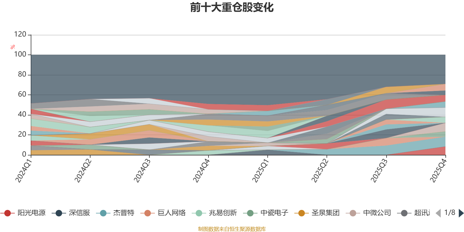 截至2025年末,基金十大重仓股分别是杰普特、寒武纪、中微公司、阳光电源、协创数据、三祥新材、精智达、神工股份、中瓷电子、迈为股份。
