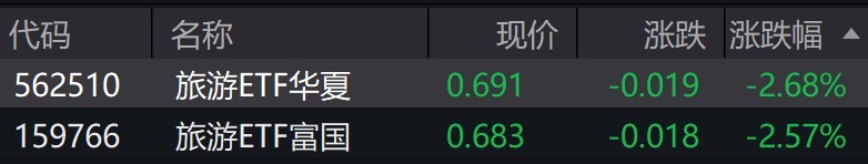 受盘面影响,旅游相关ETF跌超2%。