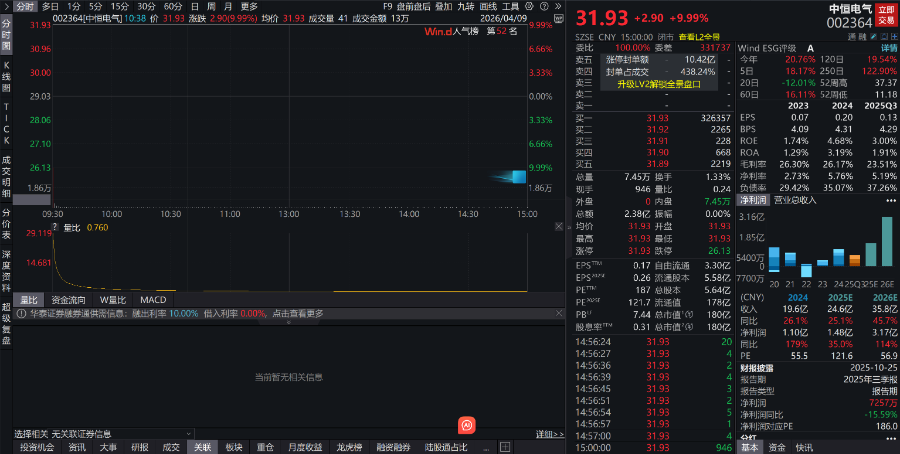 受这一强强联合的利好刺激,4月9日早盘,中恒电气直接一字涨停,股价报31.93元/股,市值跃升至180亿元,市场对此次合作的认可度可见一斑。