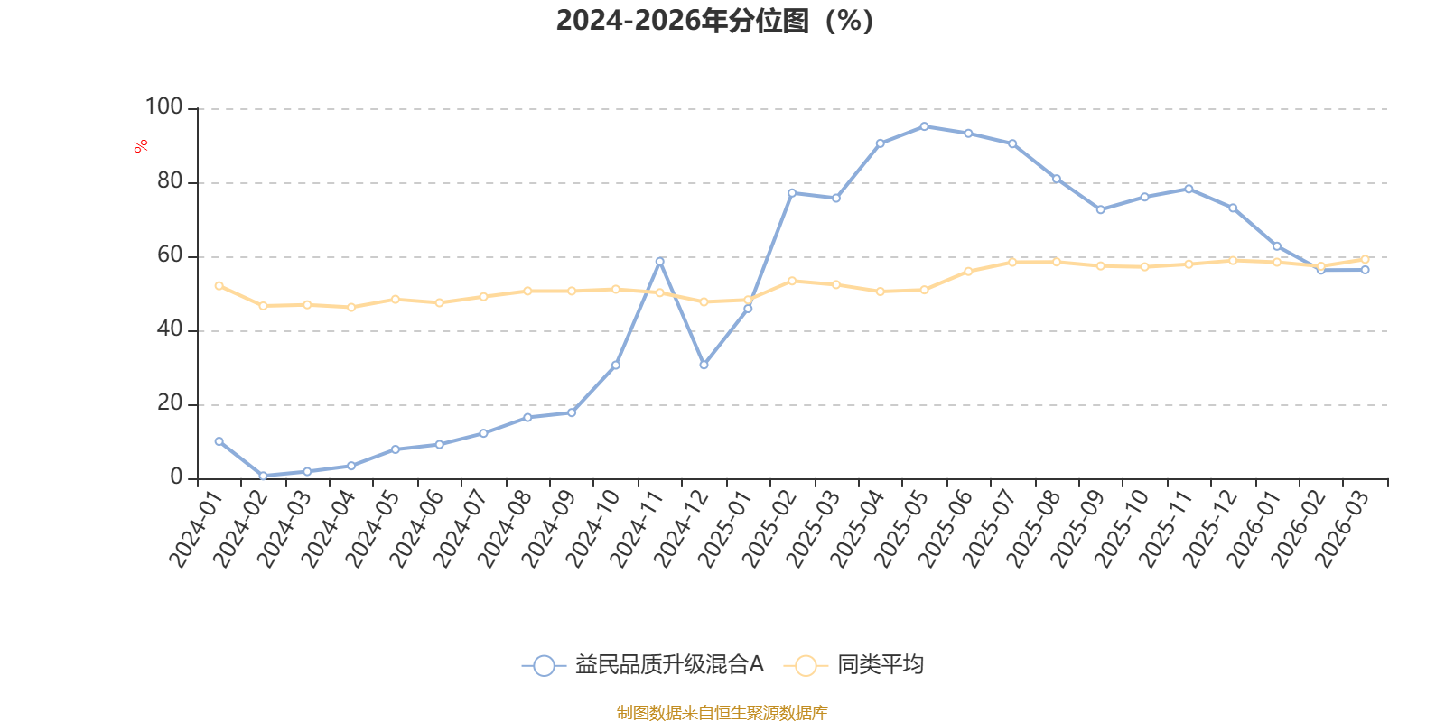 通过所选区间该基金净值增长率分位图,可以观察该基金与同类基金业绩比较情况。图为坐标原点到区间内某时点的净值增长率在同类基金中的分位数。
