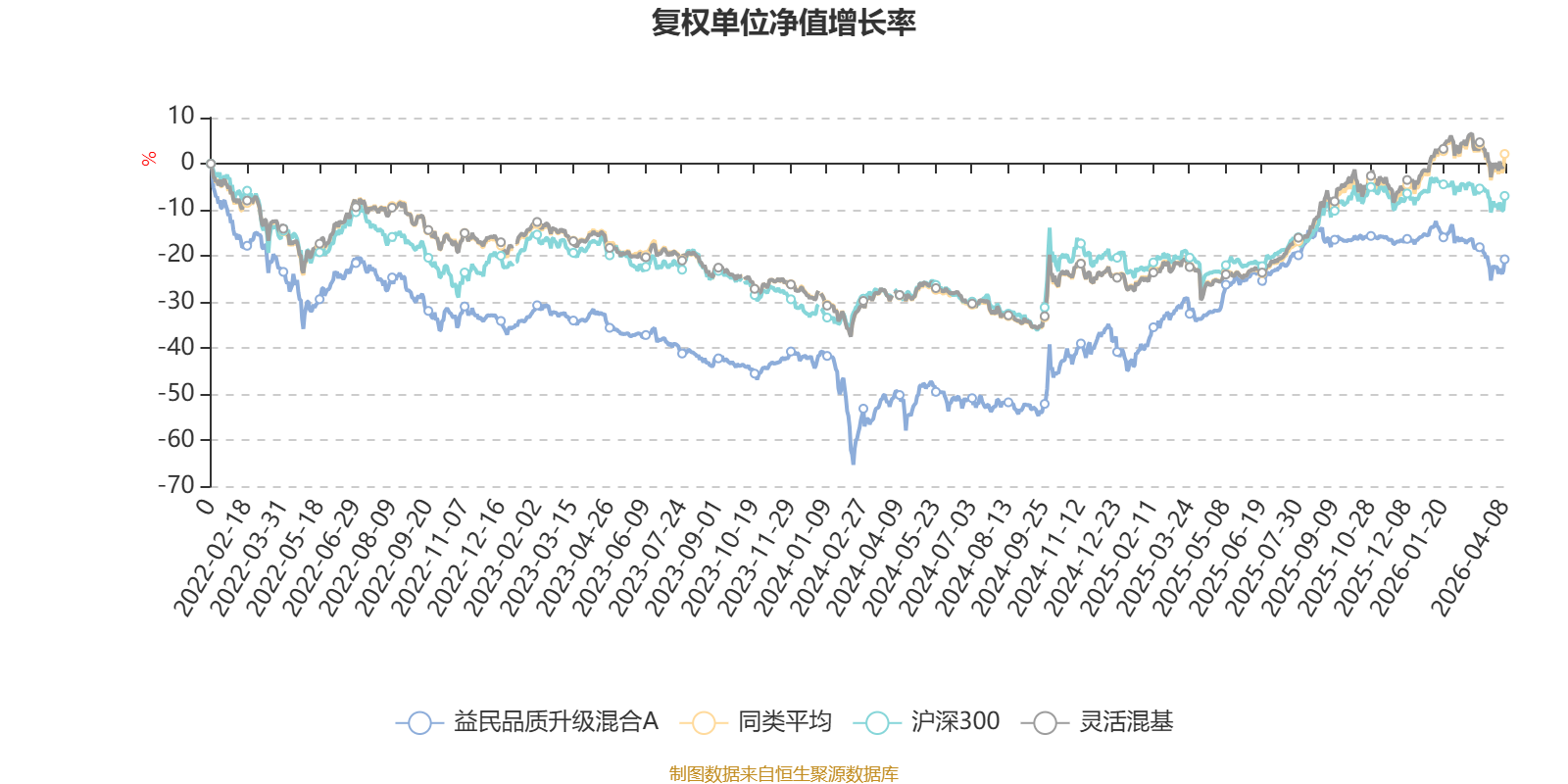 截至4月8日,益民品质升级混合A近三个月复权单位净值增长率为-8.11%,位于同类可比基金1185/1287;近半年复权单位净值增长率为-5.26%,位于同类可比基金1084/1286;近一年复权单位净值增长率为19.19%,位于同类可比基金907/1286;近三年复权单位净值增长率为15.83%,位于同类可比基金589/1286。