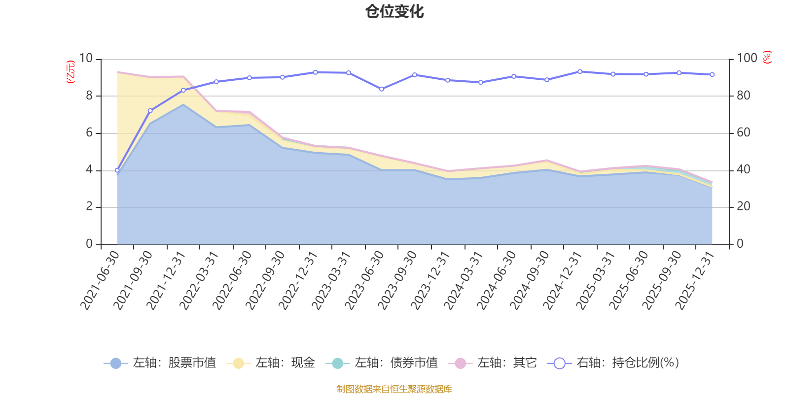 据定期报告数据统计,近三年平均股票仓位为90.4%,同类平均为85.83%。2024年末基金达到93.28%的最高仓位,2021年上半年末最低,为40.07%。
